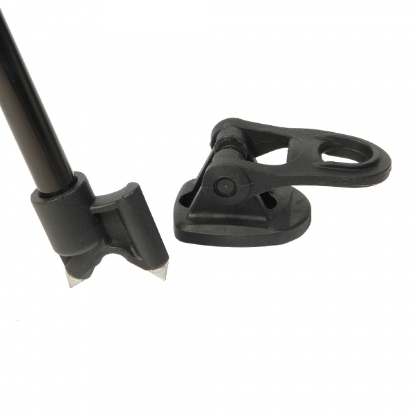 Складные ножки рамочной конструкции подавляют вибрацию, исключая колебания камеры, в том числе при вертикальном и горизонтальном панорамировании. Выполнены из алюминиевых трубок диаметром 15 и 20 мм, не подвержены коррозии. Каждая ножка регулируется отдельно, с учетом особенностей рельефа. Три секции ноги надежно фиксируются клипсовыми зажимами. Высоту штатива можно регулировать с 91 до 185 см. Усиливает жесткость конструкции верхняя поперечная растяжка. Штатив устойчив на твердом грунте или обледеневшей поверхности благодаря шипам на концах ног. Входящие в комплект резиновые опоры-башмаки обеспечивают хорошее сцепление с гладким полом. Точно расположить штатив относительно горизонта позволяет пузырьковый уровень.