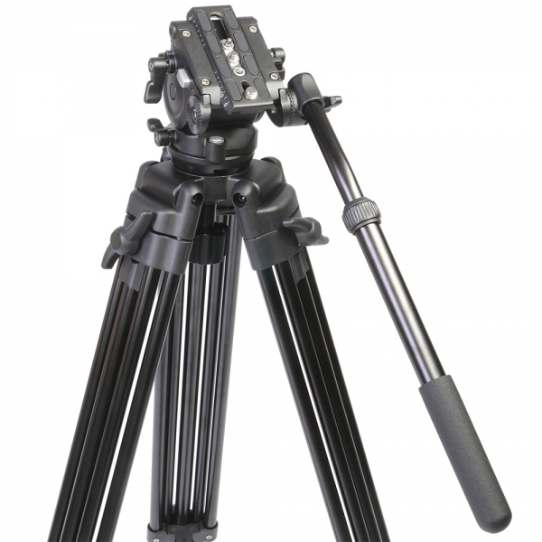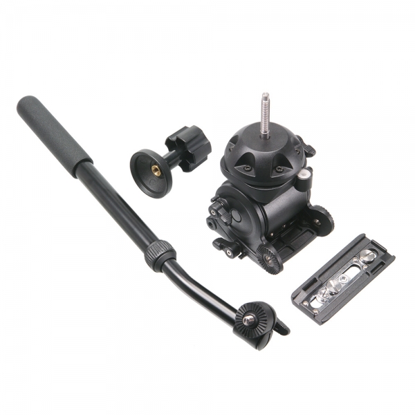 Голова оборудована механизмом демпфирования по осям панорамирования и наклона гарантирует превосходную плавность съемки и обеспечивает возможность полного контроля и точности каждого движения камеры. Высококачественная система балансировки (механизм контрбаланса) обеспечивает возможность центровать угол наклона камеры с выбором нулевого положения. Система контрбаланса при необходимости отключается. Скользящая быстросъемная площадка размером 42х105 мм поможет сбалансировать камеру при смене объектива, на торцах площадки нанесена линейка для быстрого позиционирования при повторной установке объектива. На площадке находится подпружиненный фиксатор, препятствующий сдвигу камеры, в комплекте винты 1/4" и 3/8". Диапазон угла наклона головы: +90° / -65°. Положение головы по осям панорамирования и наклона фиксируется независимо. Для установки просмотрового монитора, осветителя, микрофона или другого вспомогательного оборудования предусмотрены два разъема 1/4”. Телескопическая рукоятка для панорамирования обеспечивает высокую точность ведения камеры и может быть установлена слева или справа от головки. Длина рукоятки регулируется в пределах 380-590 мм.