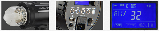 3 режима пилотного света (ВЫКЛ, PROP (автоматически подстраивающийся под мощность вспышки) и произвольно устанавливаемый в %)