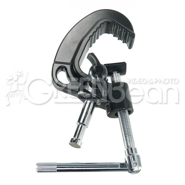 MegaClamp MC-095 – С-образный зажим, изготовлен из литого алюминиевого сплава. Предназначен для крепления осветительных приборов и другого студийного оборудования весом до 80 кг на трубах, балках, перекладинах и других конструкциях, толщиной от 10 до 55 мм. В комплекте съемная крепежная шпилька диаметром 16 мм со страховочным воротником, который не даст шпильке выскользнуть при ослаблении зажима, позволяет панорамировать осветительный прибор. Страховочный трос с карабином предохранит установленное оборудование от выскальзывания.