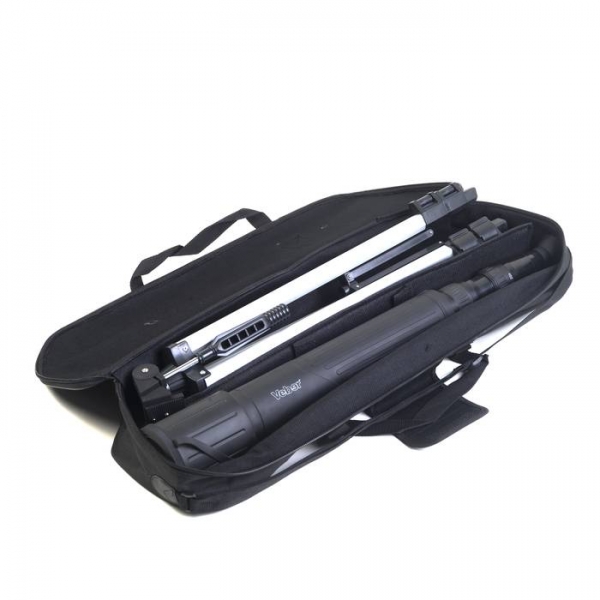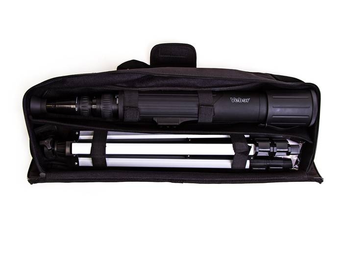 Классическая зрительная труба - рефрактор с переменным плавным увеличением от 20х до 60х. Обрезиненный корпус и резиновые уплотнительные кольца конструкции делают ее влагозащищенной. Солнцезащитная бленда глубиной 70мм служит дополнительной защитой оптики от случайных повреждений. Ближняя точка фокусировки ок. 5м на 20х. Удобно расположены кольца управления: ближнее к глазу наблюдателя - кольцо зуммирования, следующее за ним кольцо точной фокусировки. Ими удобно пользоваться даже когда труба находится в руках на весу. Т.к. труба достаточно длинная, для исключения влияния "дрожания" картинки на качество наблюдений, мы рекомендуем использовать ее на штативе (алюминиевый штатив высотой 1250мм входит в комплект). Крепление стандартное - 1/4". При необходимости можно приобрести любой другой фотоштатив. В комплекте - сумка для переноски с наплечным ремнем и ручками. Штатив и труба внутри разделены между собой поролоновой прокладкой. Инструкция на русском языке, гарантийный талон.