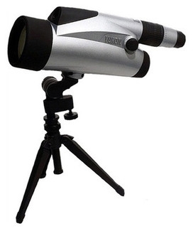 Зрительная труба 100x Юкон LT Silver с плавно изменяющимся увеличением от 6 до 100 крат. Прибор оснащен двумя объективами 100 мм. и 25 мм. Наличие объектива с очень высокой светосилой позволяет эффективно использовать изделие в сумеречных условиях. Использование двух объективов с рычагом переключения позволило достичь небывалого изменения кратности от 6* до 100*. Настольный штатив в комплекте. Прямой окуляр. Два гнезда крепления на штатив 1/4 и 3/8 дюйма. Возможность съемки видеонасадкой и цифровой фотокамерой с помощью специального фотоадаптера (камера должна иметь гнездо крепления на штатив). Трубой можно пользоваться, не снимая защитного чехла.